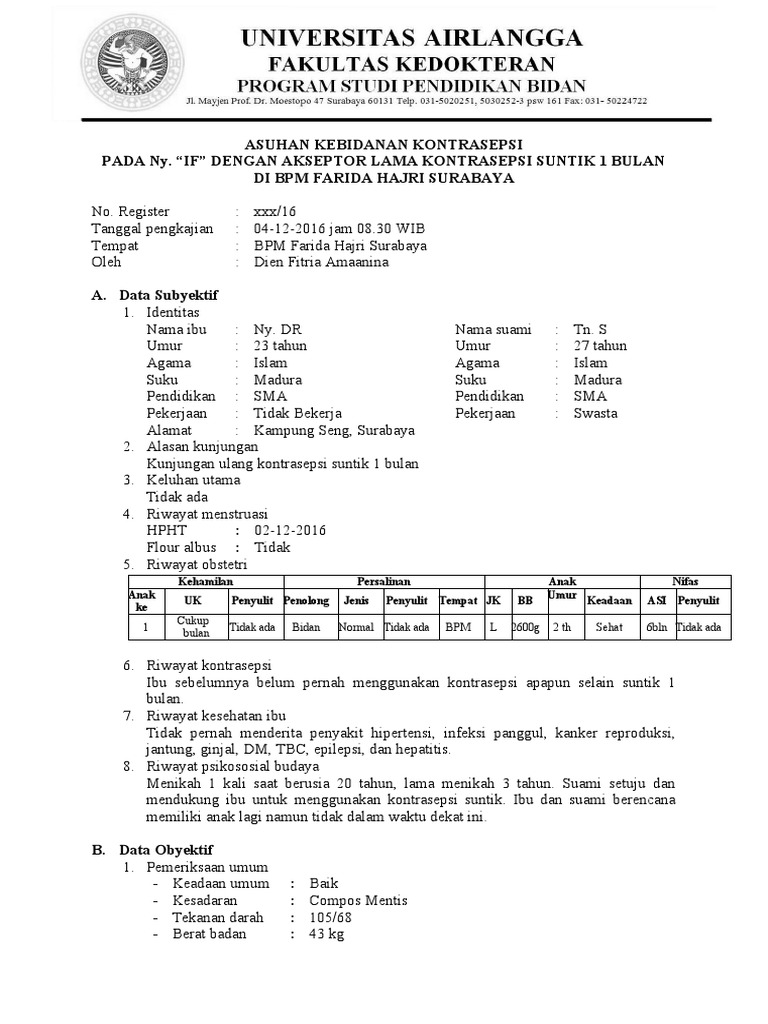Nama ibu : Ny. DR Nama suami : Tn. S