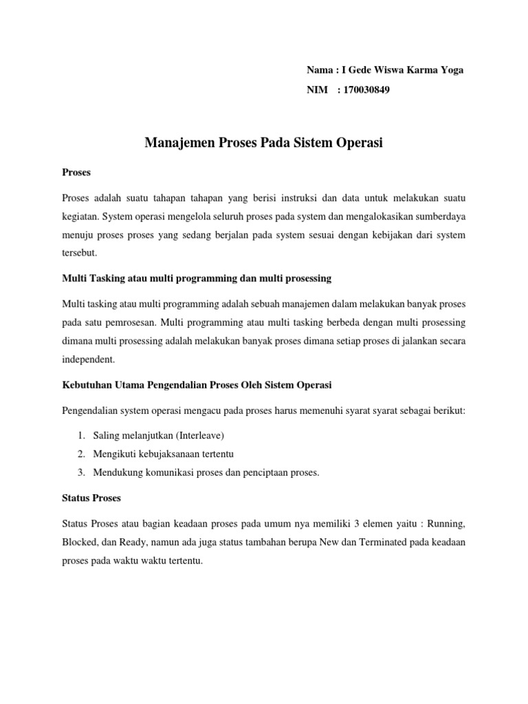 mengeksekusi instruksi dari pengguna komputer. Ada 3 kemungkinan bila sebuah proses
