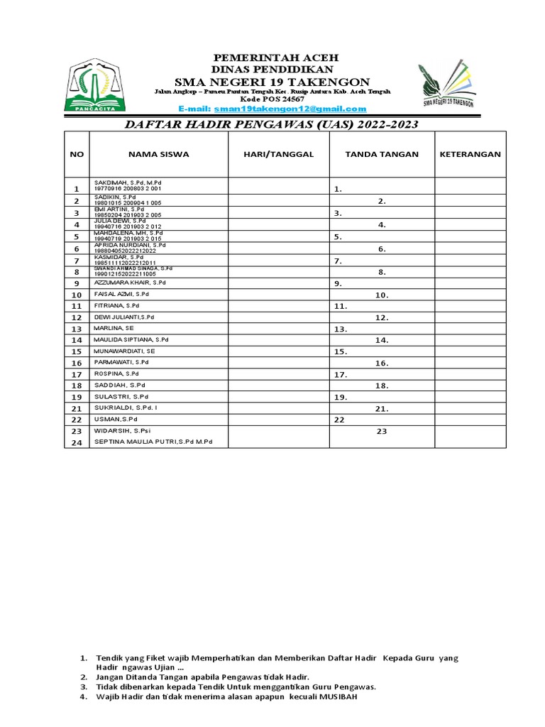DAFTAR HADIR PENGAWAS (UAS) 2022-2023