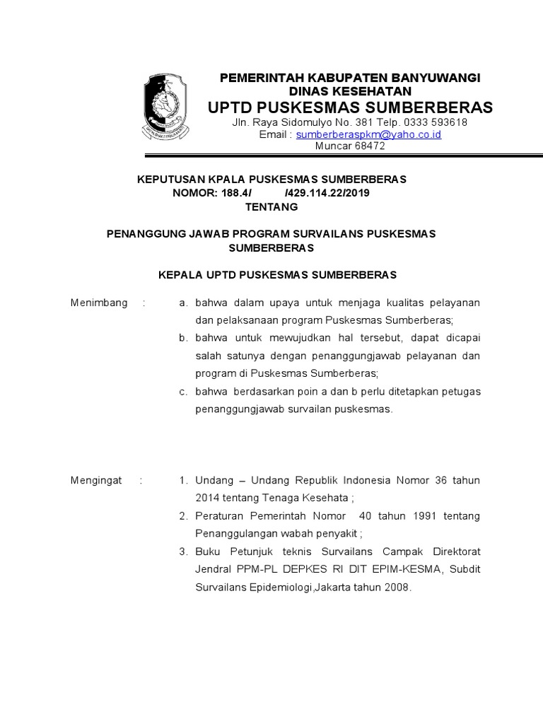 KEPUTUSAN KPALA PUSKESMAS SUMBERBERAS