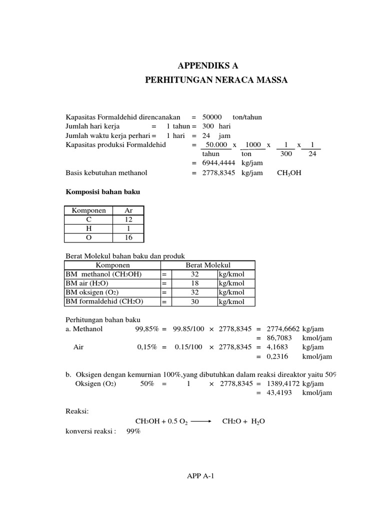 Perhitungan Neraca Massa dan Panas Formaldehid