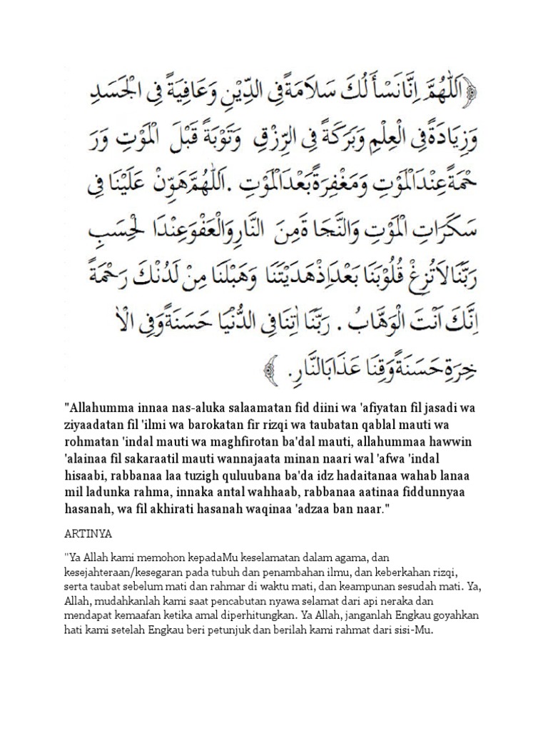 "Ya Allah kami memohon kepadaMu keselamatan dalam agama, dan