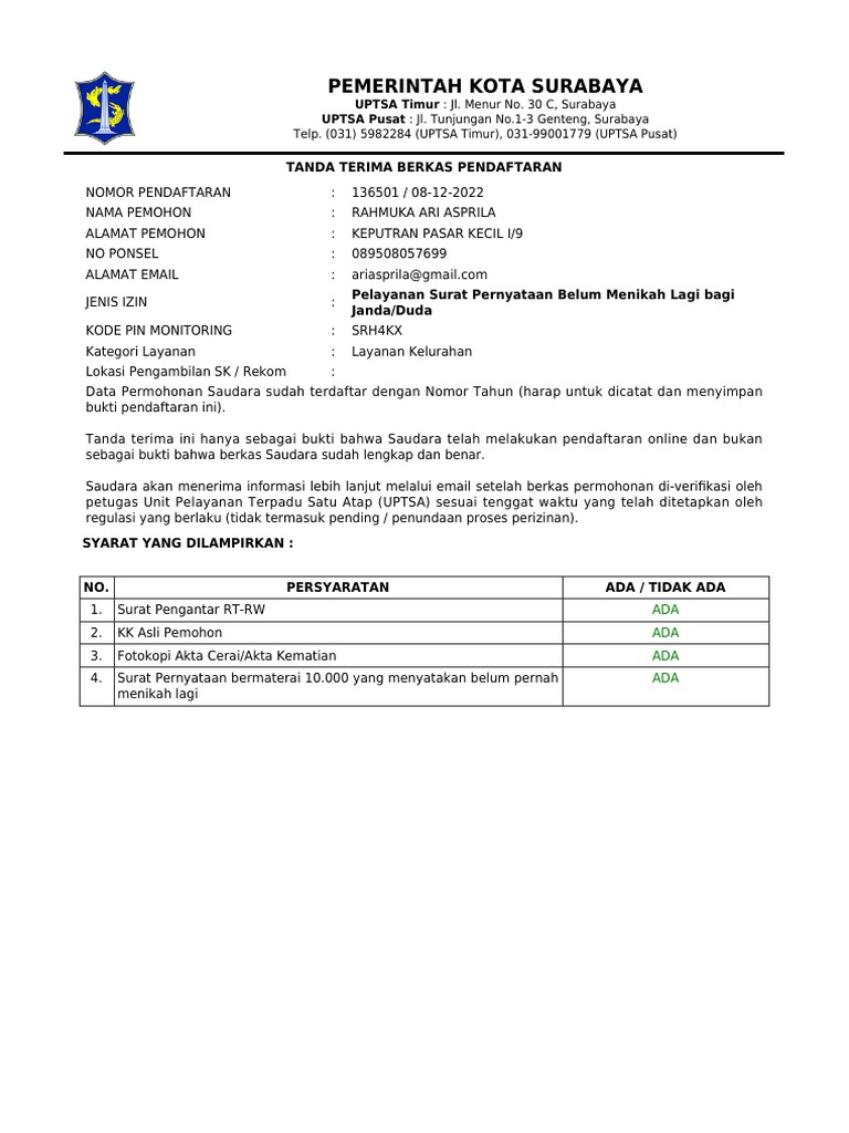 Telp. (031) 5982284 (UPTSA Timur), 031-99001779 (UPTSA Pusat)