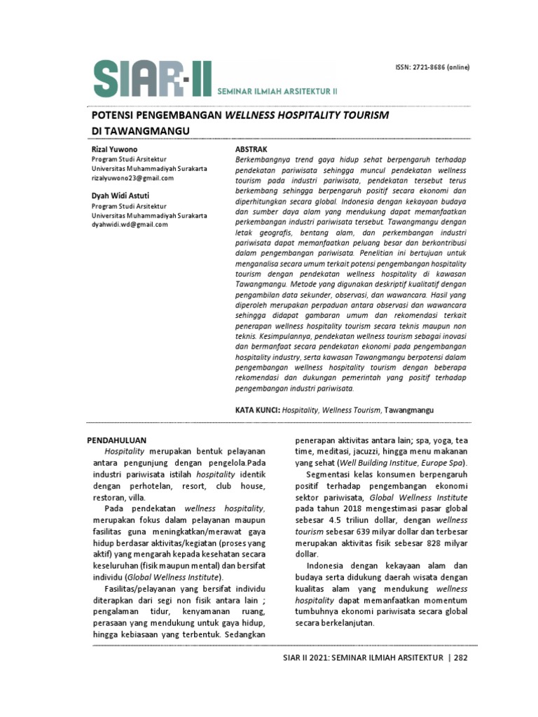 KATA KUNCI: Hospitality, Wellness Tourism, Tawangmangu