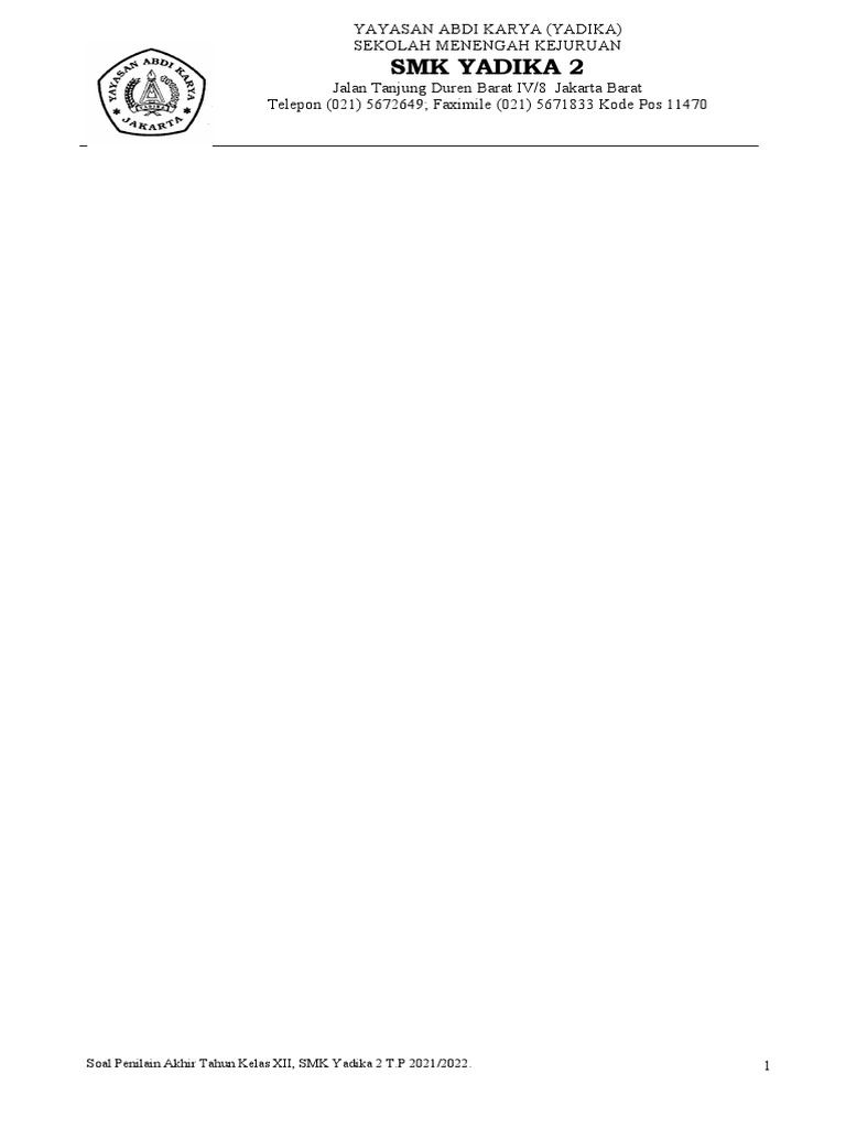 Soal Penilain Akhir Tahun Kelas XII, SMK Yadika 2 T.P 2021/2022. 1