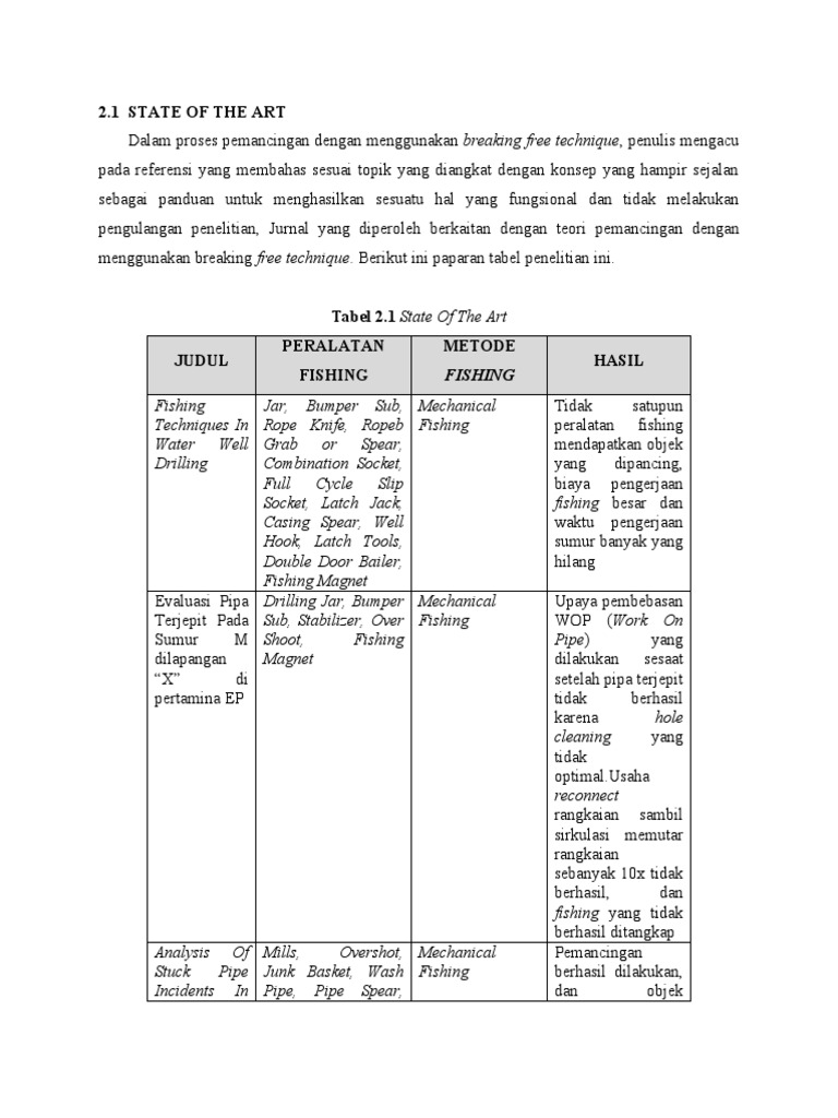 Jenis, ukuran, bentuk fish, situasi dan kondisi lubang bor. Pada proses fishing tersebut, akan