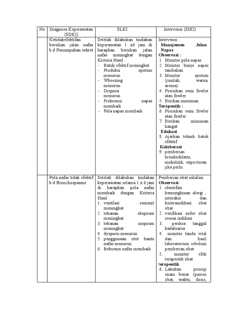 bersihan jalan nafas keperawatan 1 x6 jam di Manajemen Jalan