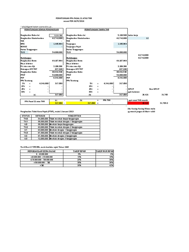 PERHITUNGAN PPh PASAL 21 ATAS THR