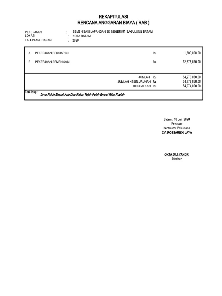 JUMLAH KESELURUHAN Rp 54,273,850.00