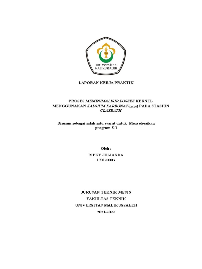 Mesin Fakultas Teknik Universitas Malikussaleh menyatakan bahwa laporan