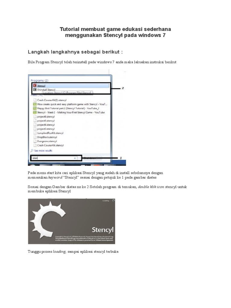 memasukan keyword “Stencyl” sesuai dengan petujuk ke 1 pada gambar diatas