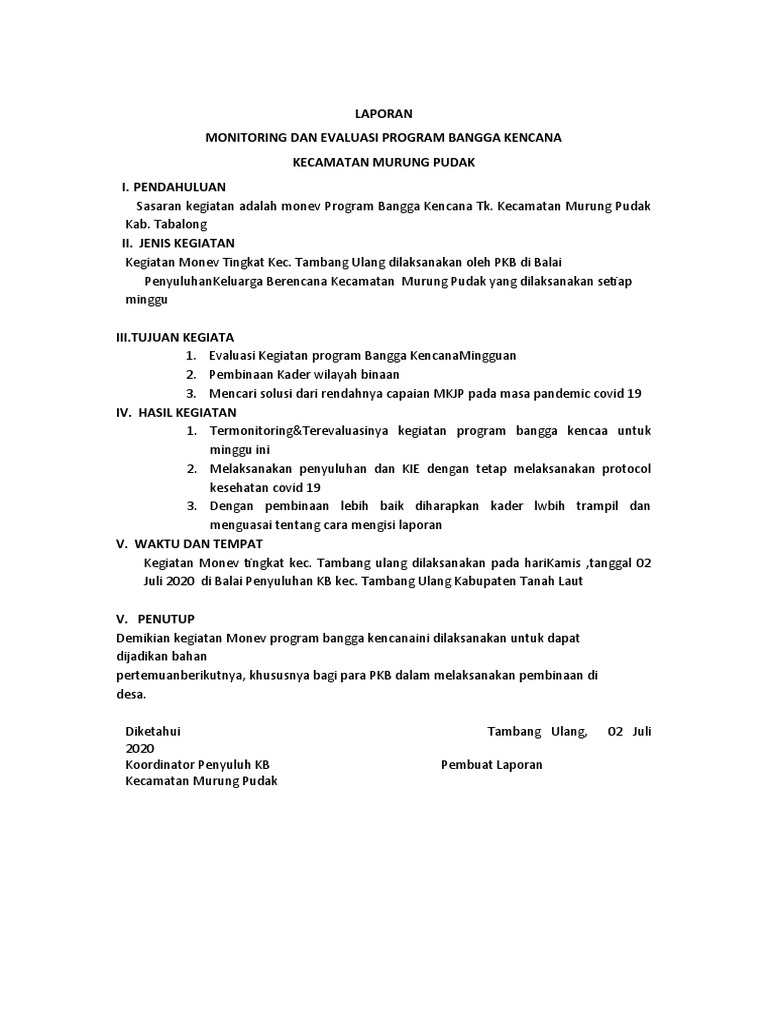 Demikian kegiatan Monev program bangga kencanaini dilaksanakan untuk dapat