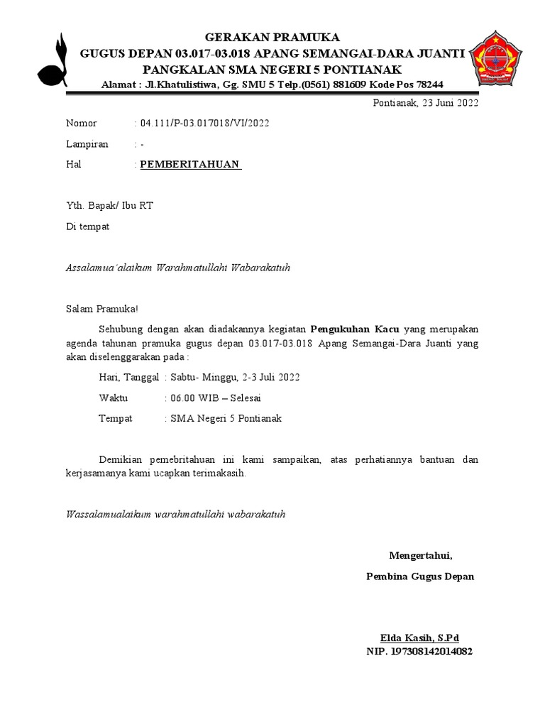 Demikian pemebritahuan ini kami sampaikan, atas perhatiannya bantuan dan