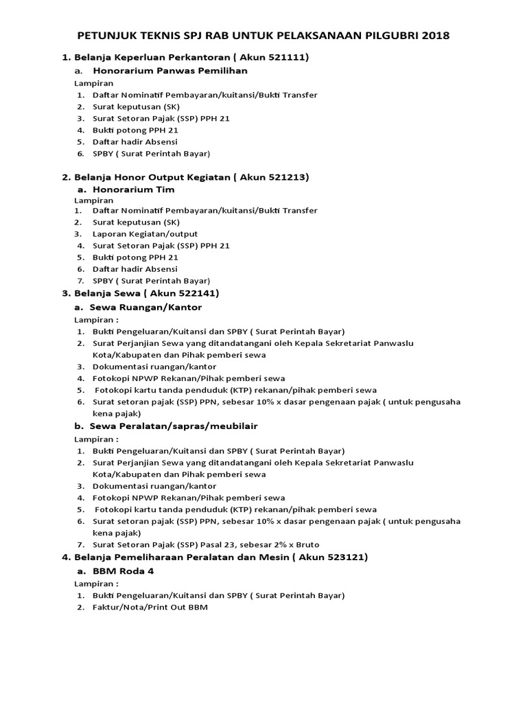 PETUNJUK TEKNIS SPJ RAB UNTUK PELAKSANAAN PILGUBRI 2018