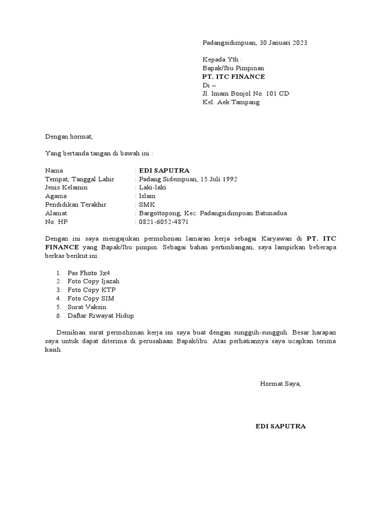 SURAT LAMARAN KERJA