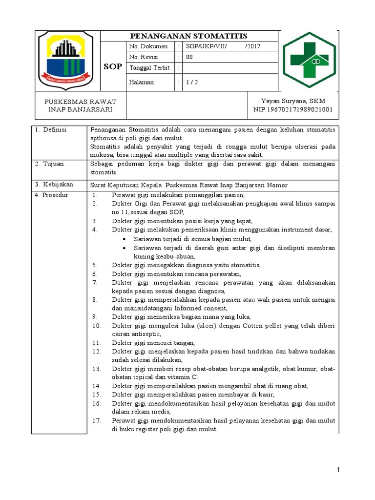 1. Definisi Penanganan Stomatitis adalah cara menangani pasien dengan keluhan stomatitis