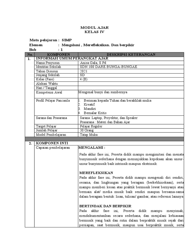 Modul Ajar SBdP Kelas IV: Musik dan Bunyi