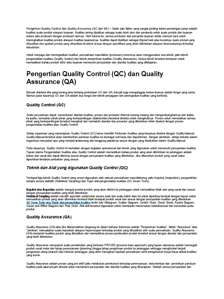 Pengertian Quality Control dan Quality Assurance (QC dan QA)
