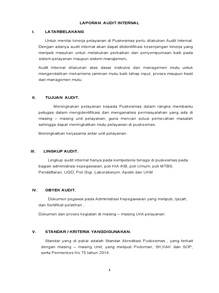 Lingkup audit internal hanya pada kompetensi tenaga di puskesmas pada