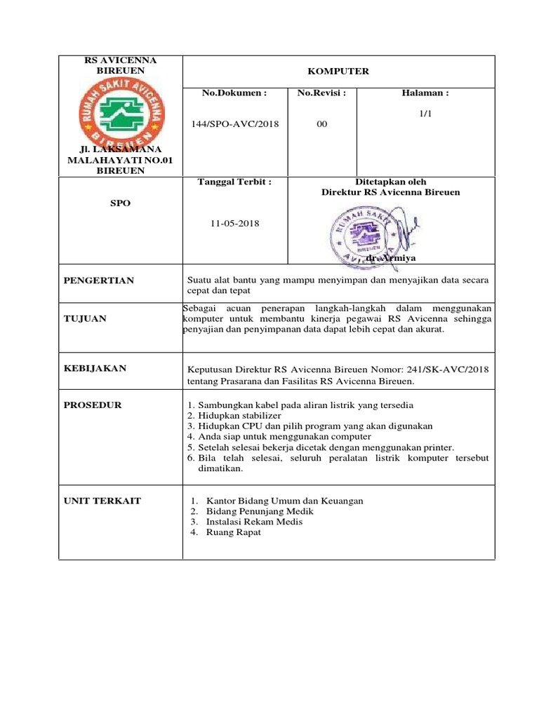 Prosedur Peralatan RS Avicenna