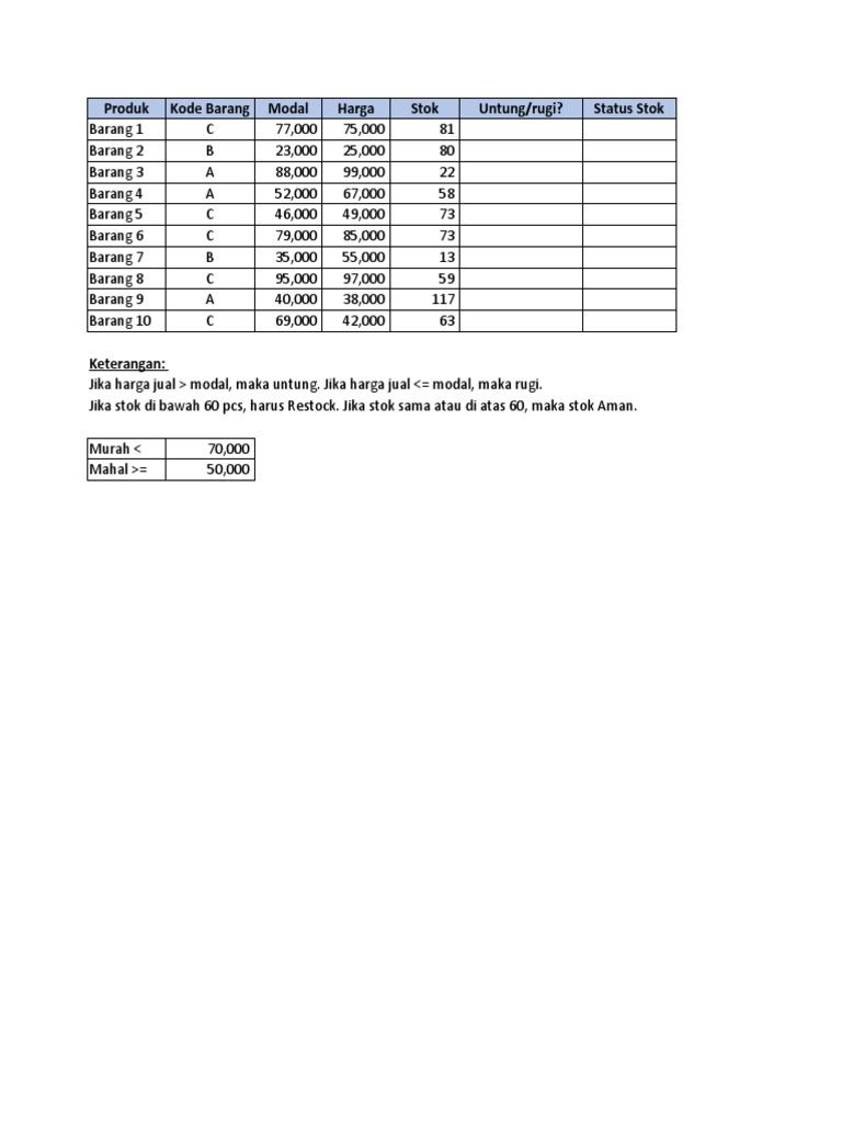 Produk Kode Barang Modal Harga Stok Untung/rugi?