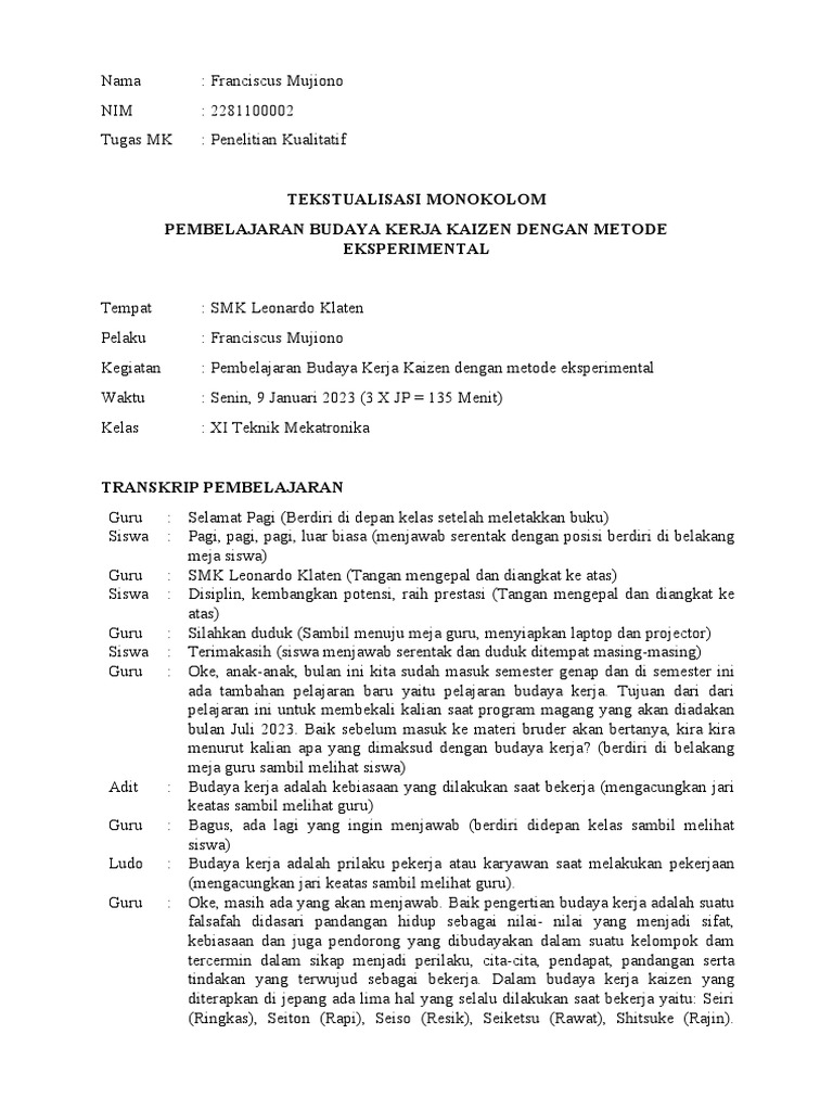 PEMBELAJARAN BUDAYA KERJA KAIZEN DENGAN METODE