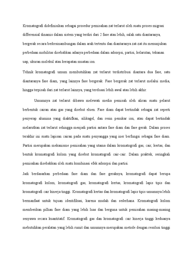 Jadi berdasarkan perbedaan fase diam dan fase geraknya, kromatografi dapat berupa