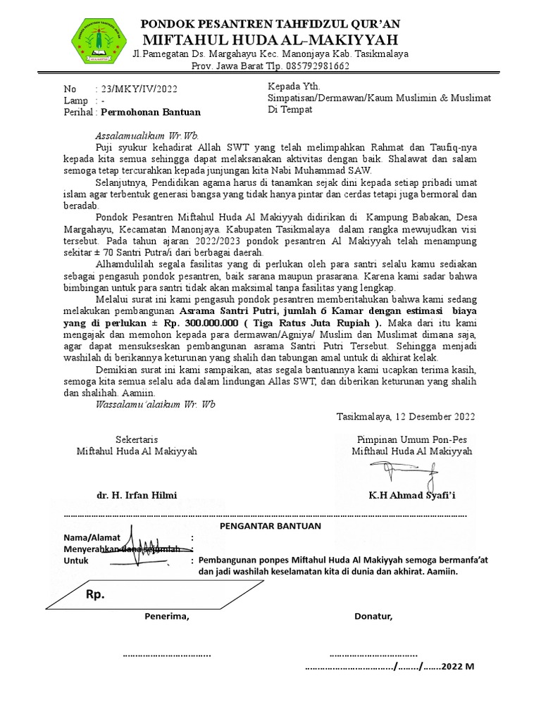 Perihal : Permohonan Bantuan Di Tempat