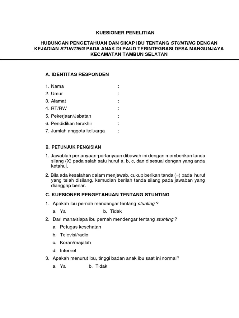 C. KUESIONER PENGETAHUAN TENTANG STUNTING