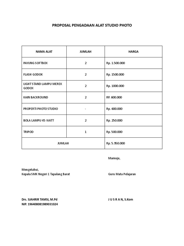 PROPOSAL PENGADAAN ALAT STUDIO PHOTO