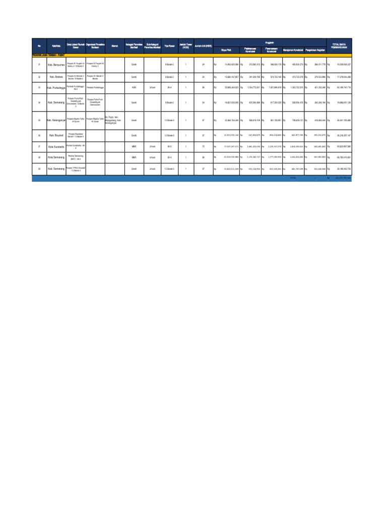 Assalafiyyah Santri 8 Barak-2 1 24 Rp 16,821,635,545 Rp 420,540,889 Rp 617,354,025 Rp 508,854,475 Rp 300,266,194 Rp 18,668,651,128