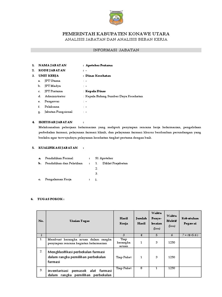 1. NAMA JABATAN : Apoteker Pertama