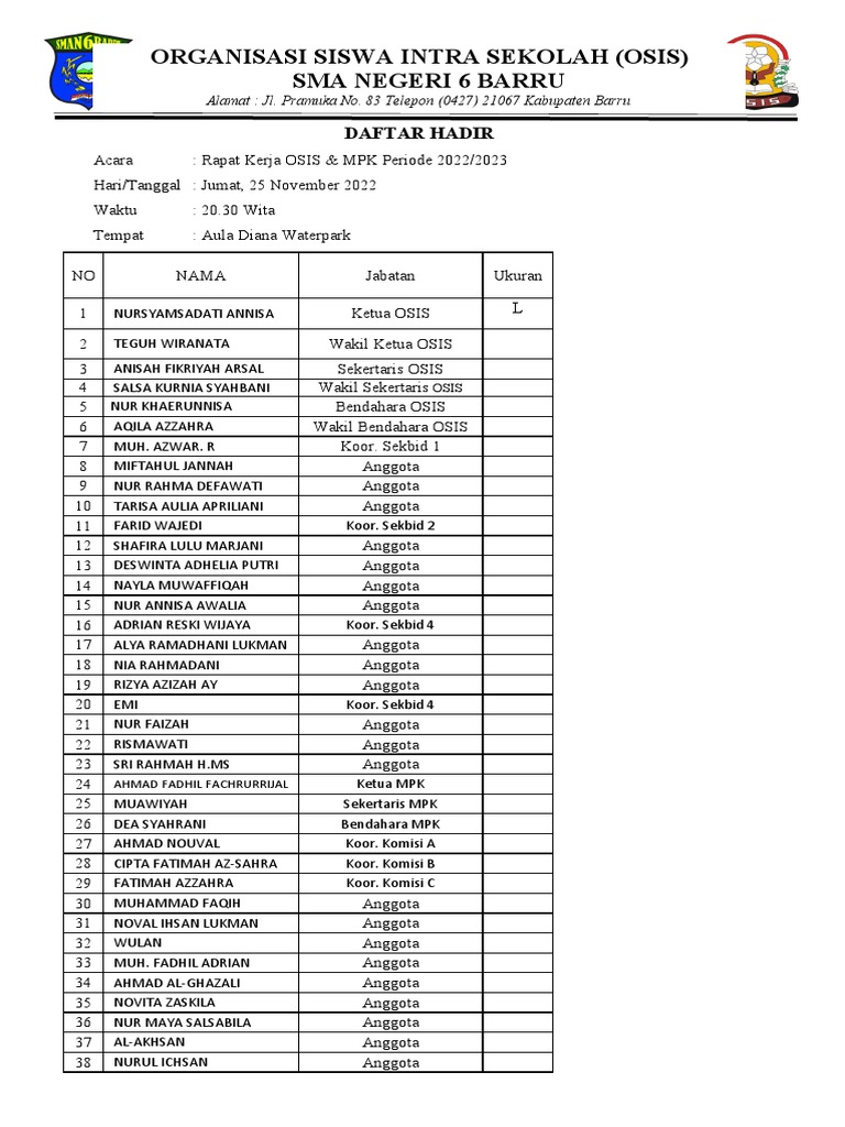 1 NURSYAMSADATI ANNISA Ketua OSIS L