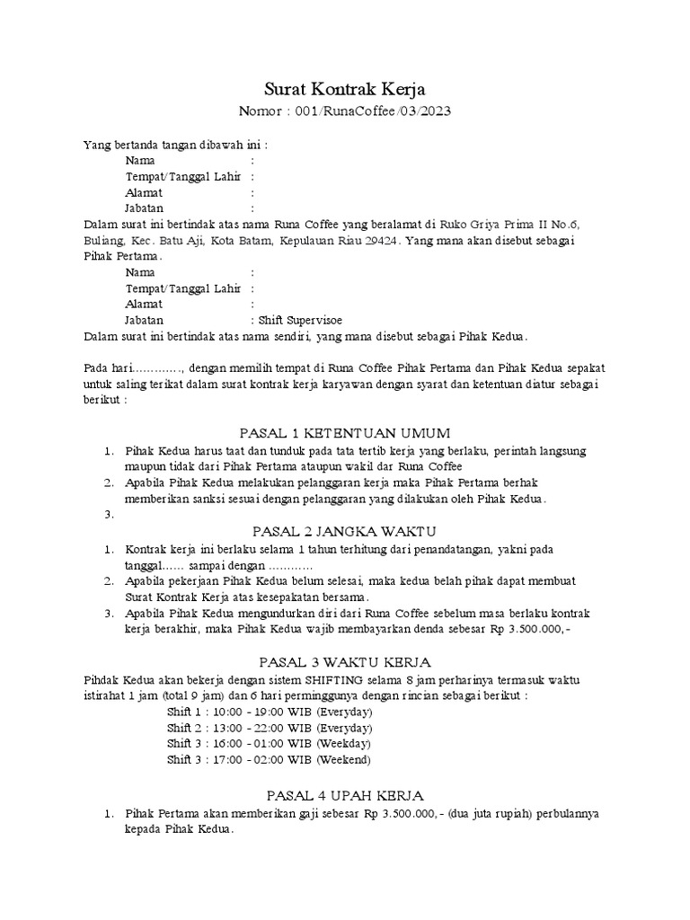 Surat Kontrak Kerja