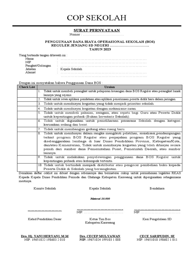 9. Tidak untuk melakukan penyelewengan penggunaan dana BOS Reguler untuk