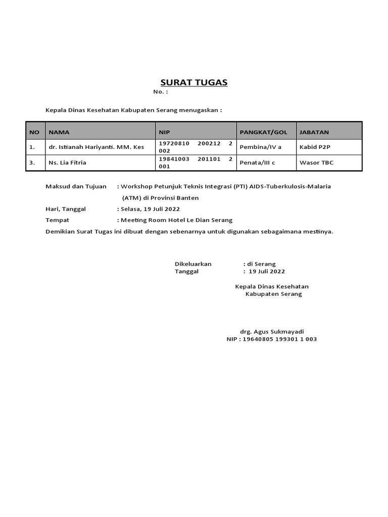 Kepala Dinas Kesehatan Kabupaten Serang menugaskan :