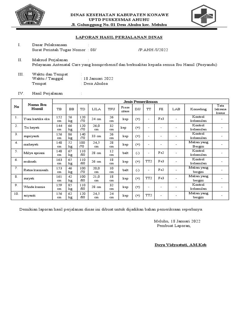Laporan Kunjungan Kesehatan Ibu Hamil