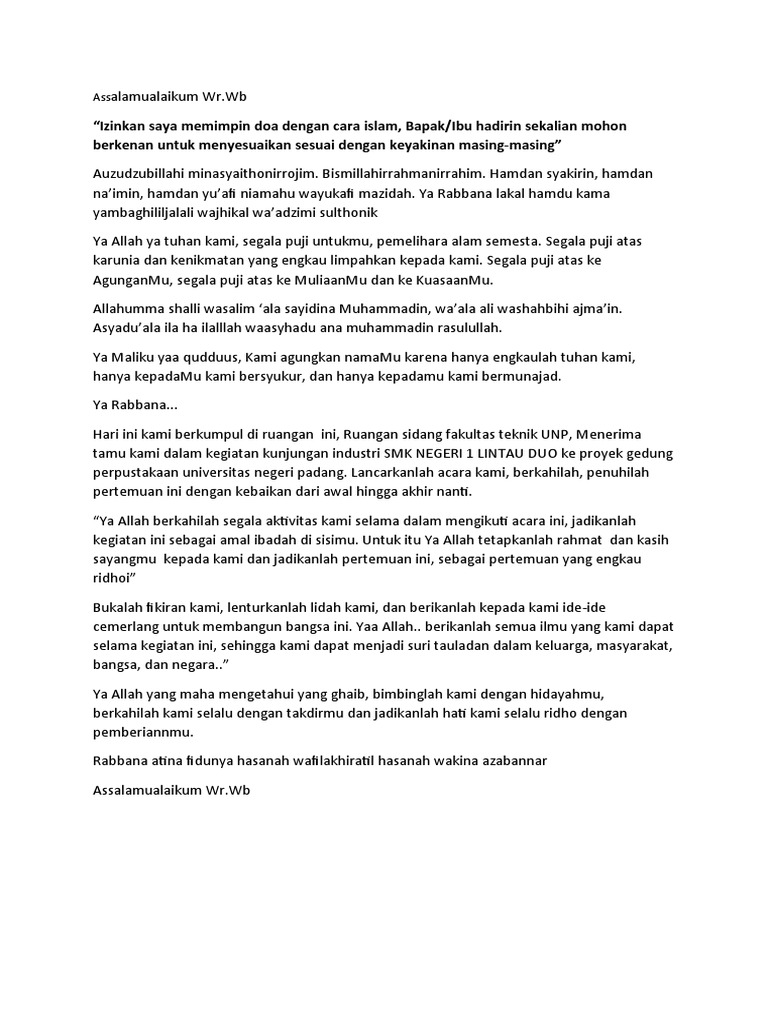 “Izinkan saya memimpin doa dengan cara islam, Bapak/Ibu hadirin sekalian mohon