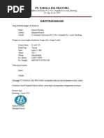 Surat jalan ini berisi daftar barang yang dikirim dari gudang ke tujuan tertentu menggunakan kendaraan tertentu yang dikemudikan oleh supir tertentu. Surat jalan ini mencantumkan detail seperti tanggal, tujuan, jenis kendaraan, nomor polisi, nama supir, daftar barang yang dikirim beserta kuantitas dan keterangannya. Surat jalan ini ditandatangani petugas gudang dan supir sebagai bukti penerimaan dan pengiri