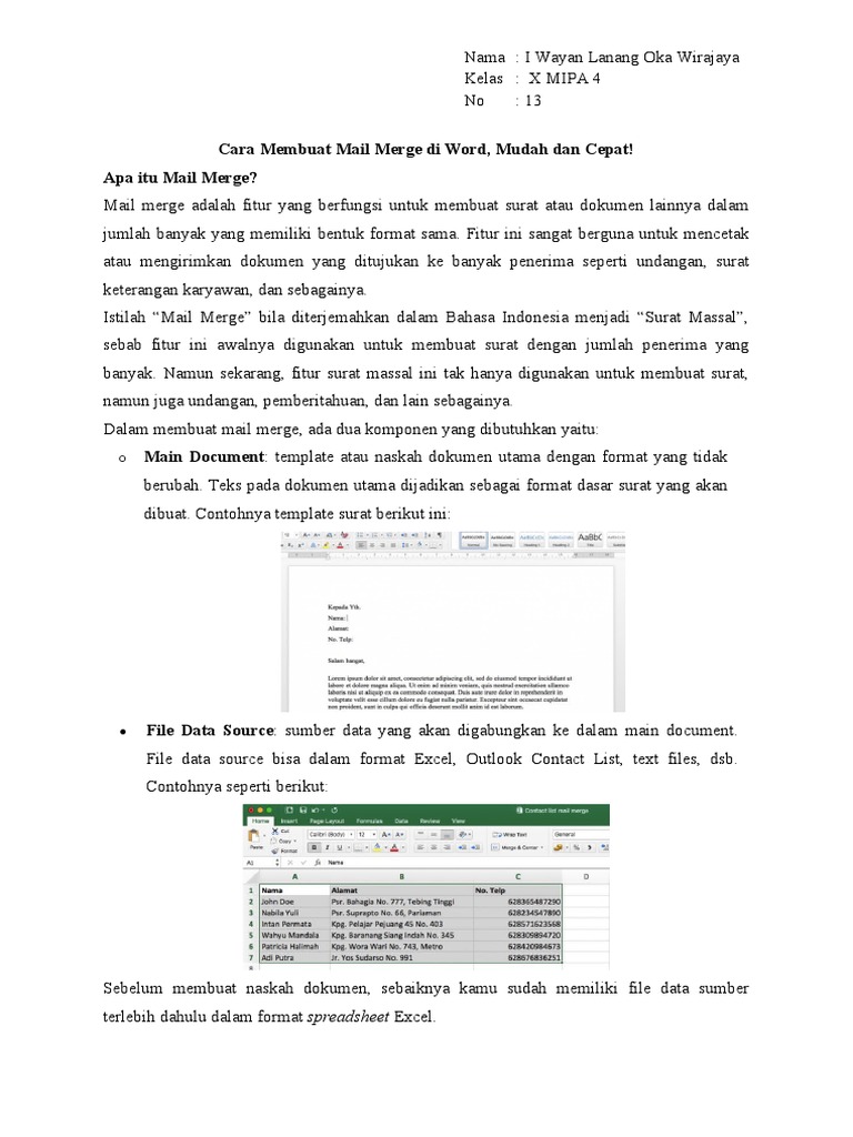 Singkatnya, cara membuat mail merge di Word meliputi proses-proses berikut: