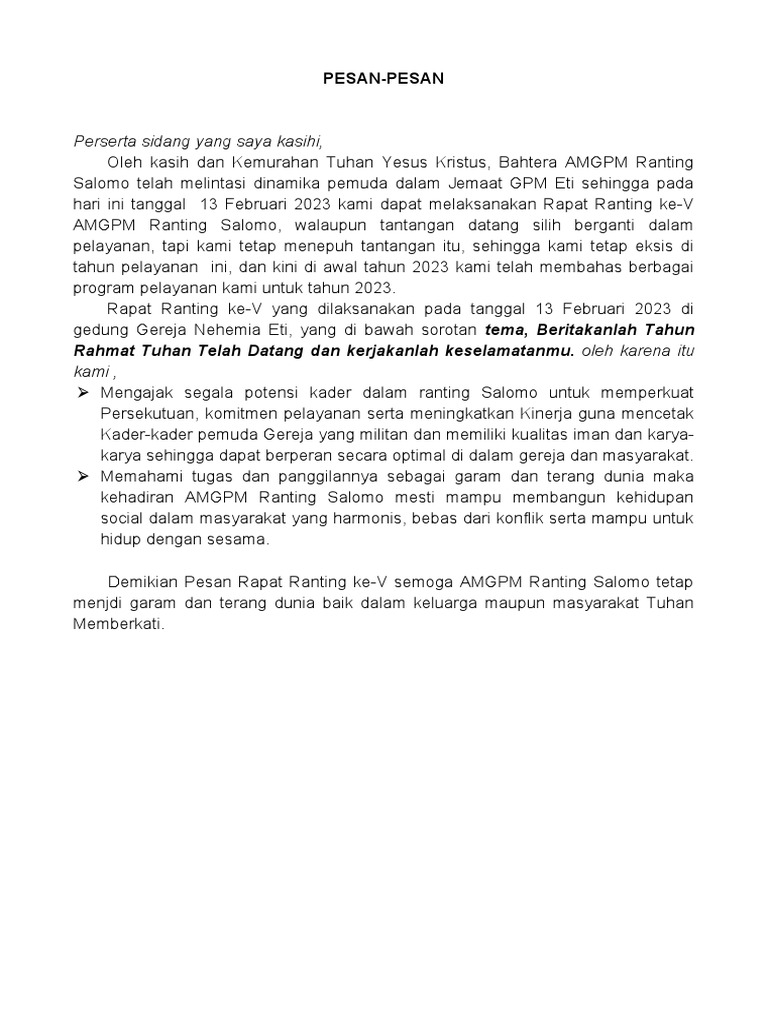 Demikian Pesan Rapat Ranting ke-V semoga AMGPM Ranting Salomo tetap