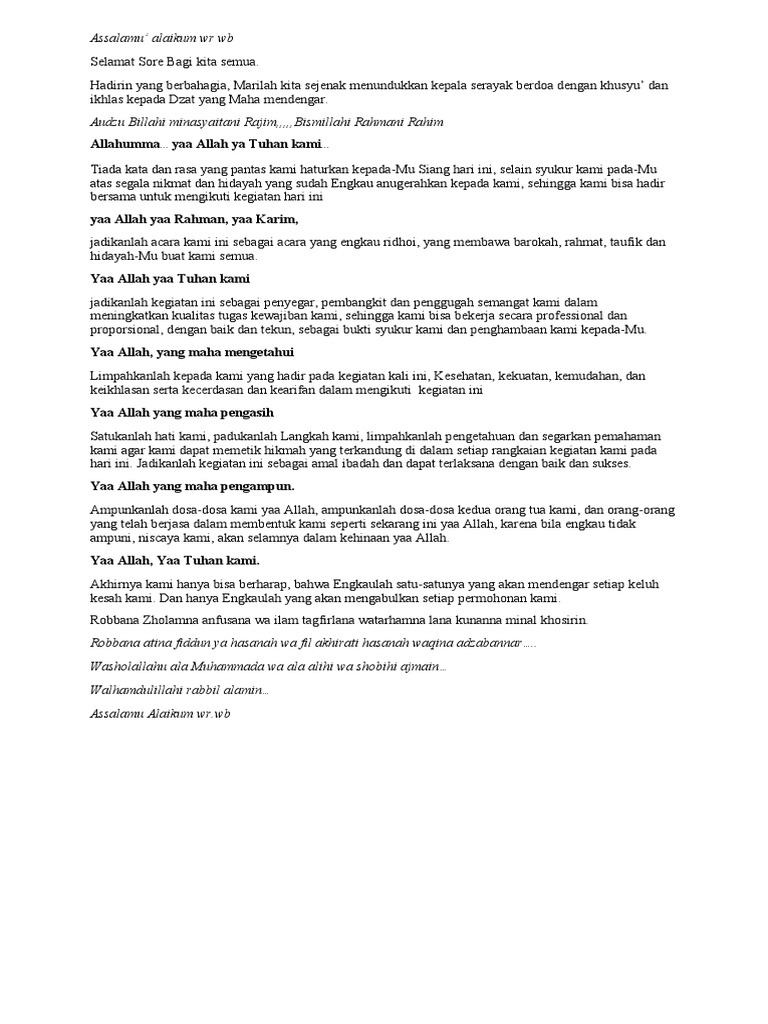 Hadirin yang berbahagia, Marilah kita sejenak menundukkan kepala serayak berdoa dengan khusyu’ dan
