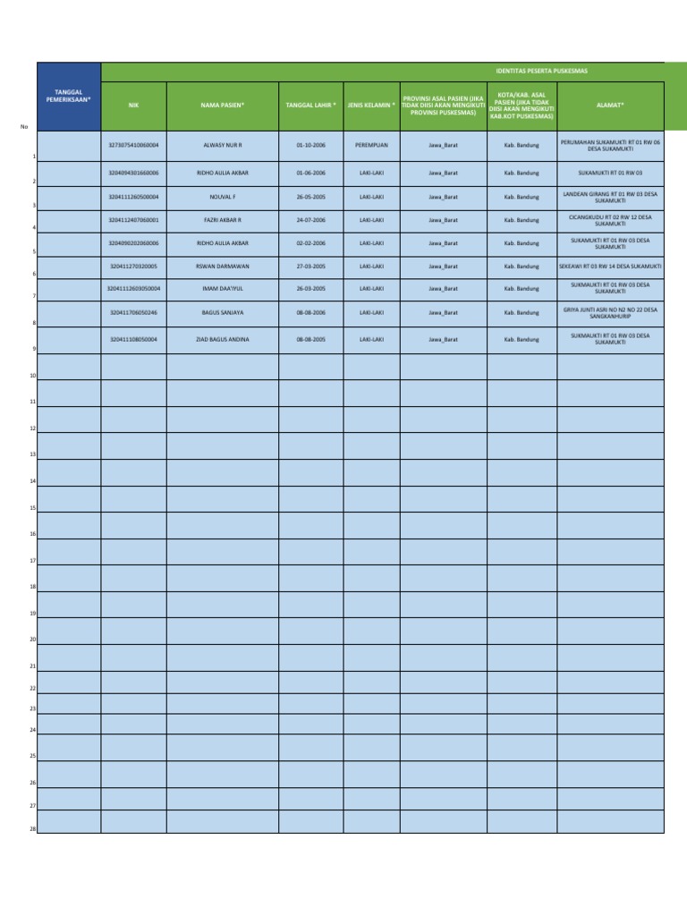 IDENTITAS PESERTA PUSKESMAS