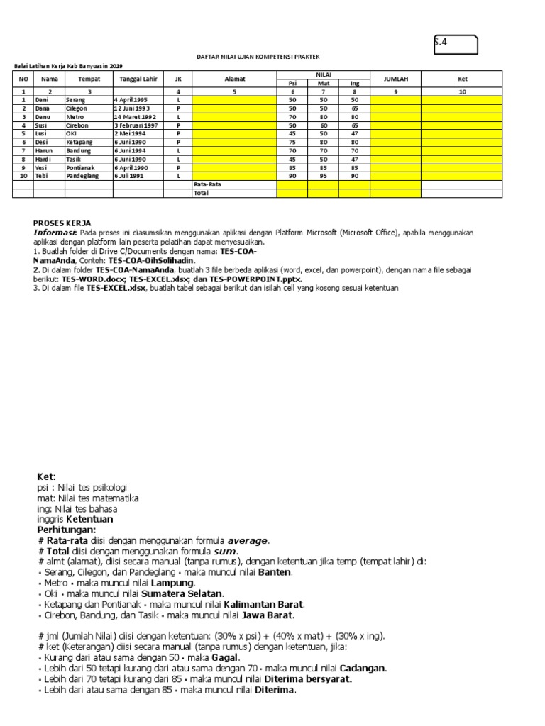 berikut: TES-WORD.docx; TES-EXCEL.xlsx; dan TES-POWERPOINT.pptx.