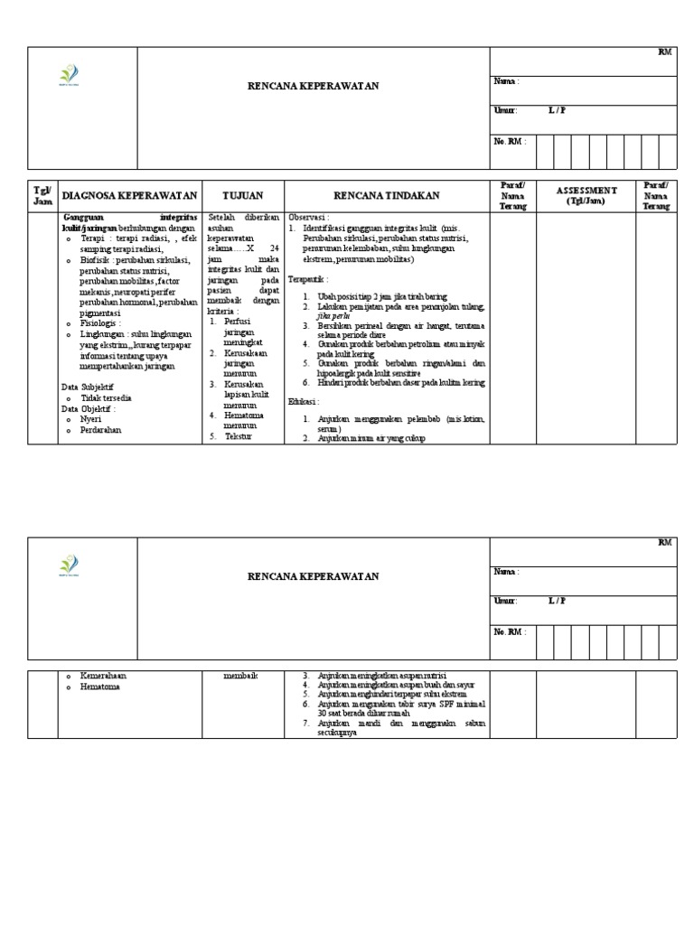 DIAGNOSA KEPERAWATAN TUJUAN RENCANA TINDAKAN Nama