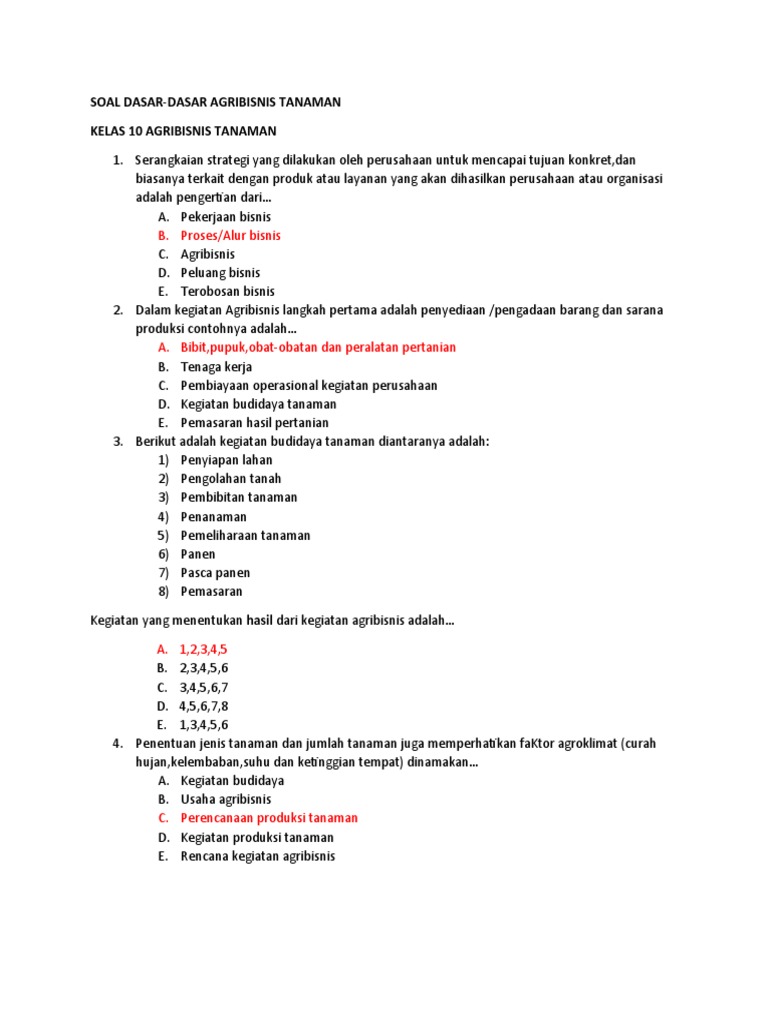 SOAL DASAR-DASAR AGRIBISNIS TANAMAN
