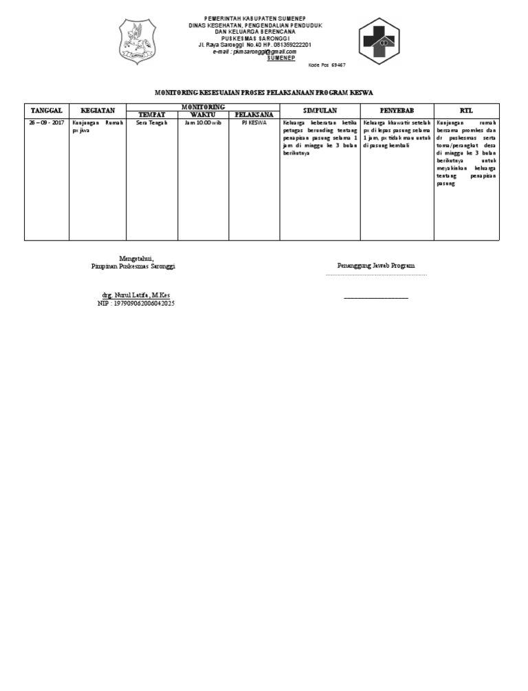 Pimpinan Puskesmas Saronggi Penanggung Jawab Program