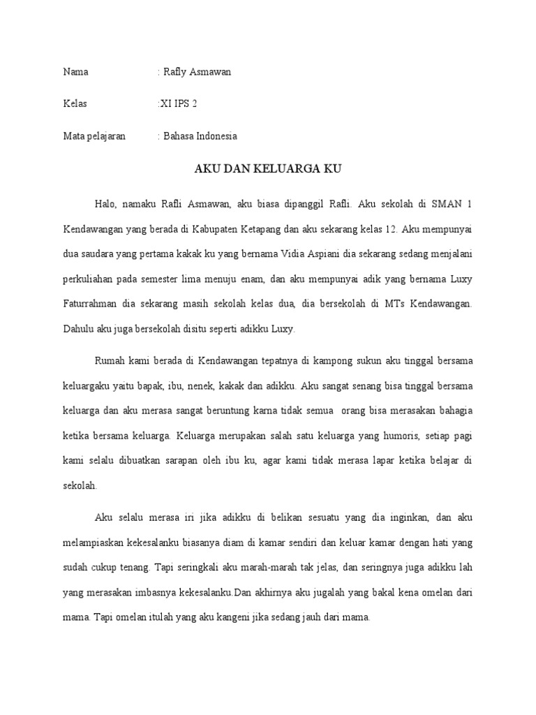 keluargaku yaitu bapak, ibu, nenek, kakak dan adikku. Aku sangat senang bisa tinggal bersama
