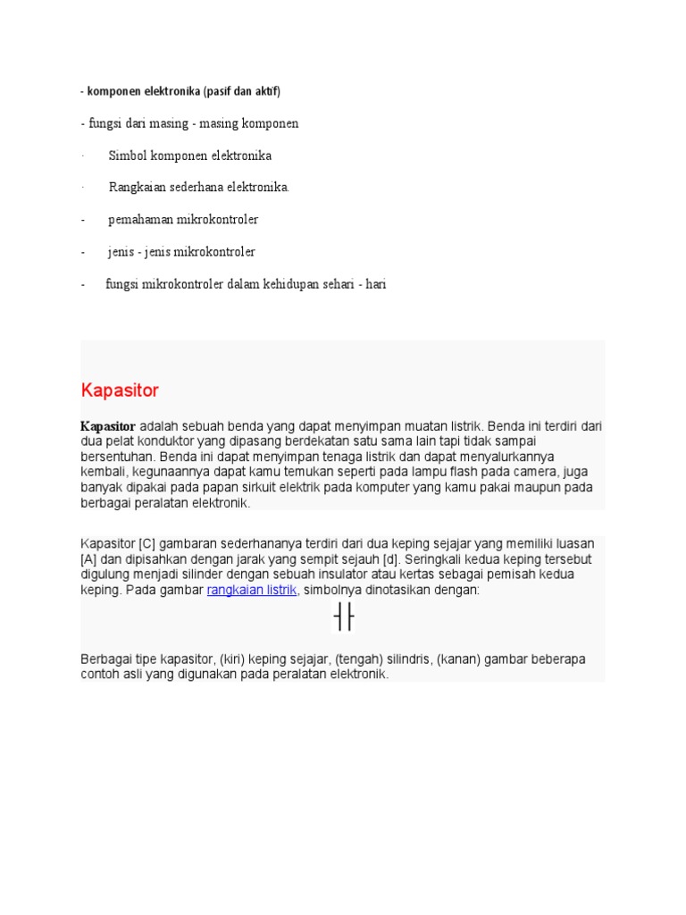 Kapasitor merupakan komponen elektronika yang terdiri dari dua konduktor.