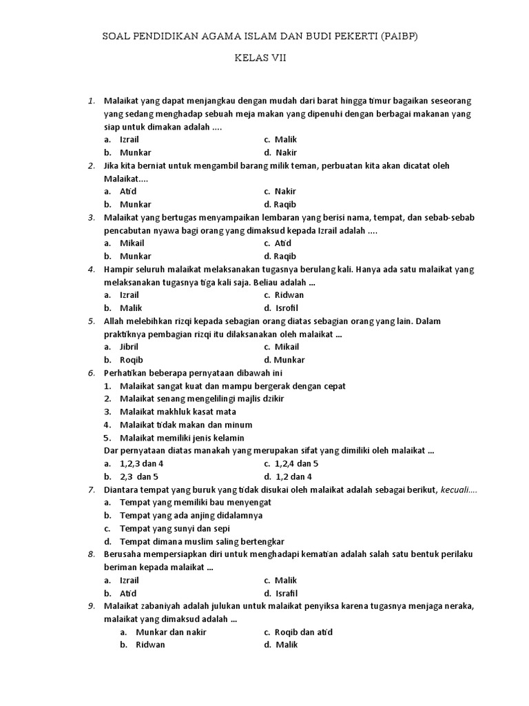 SOAL PENDIDIKAN AGAMA ISLAM DAN BUDI PEKERTI (PAIBP)
